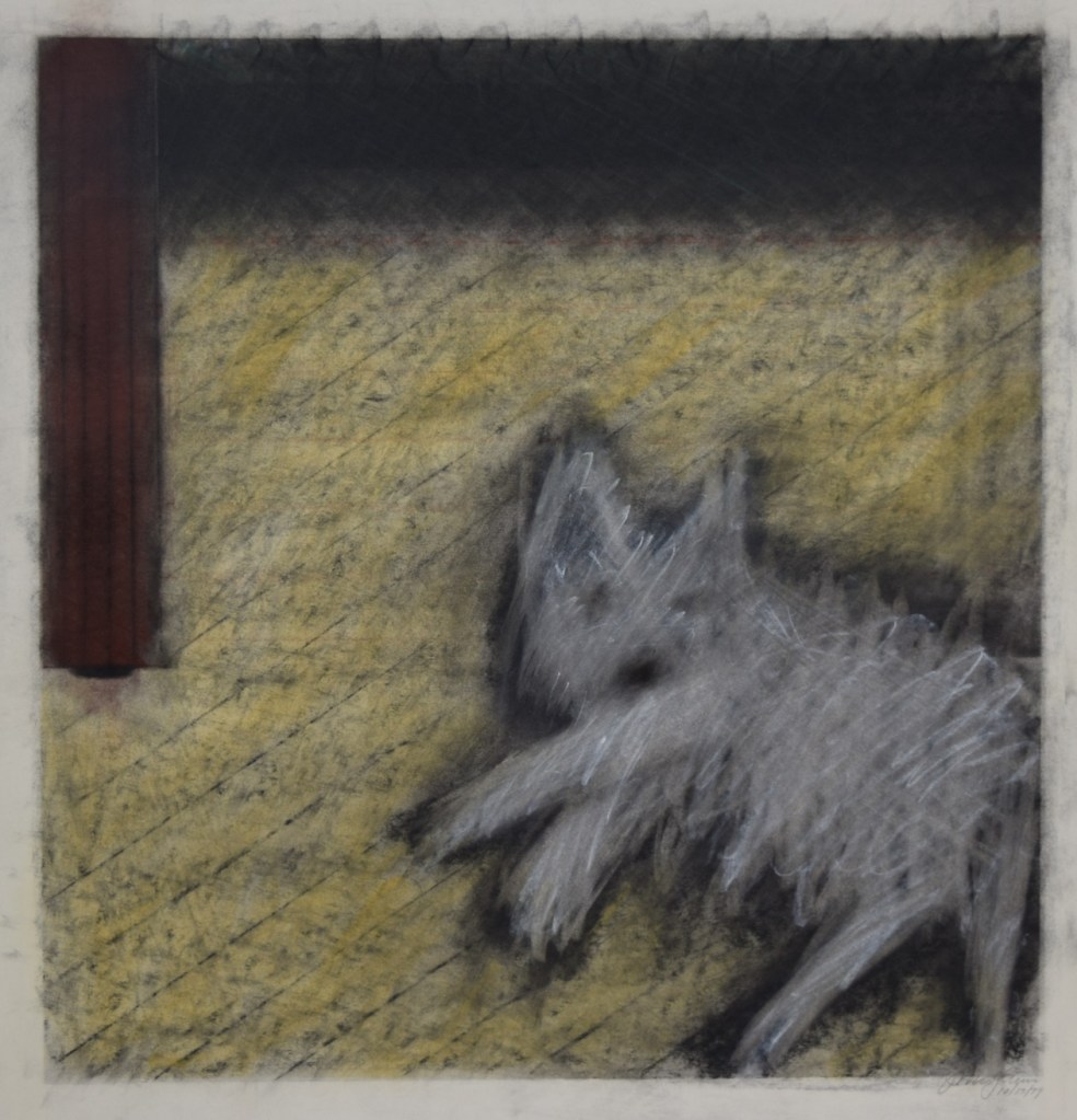 “Making art is a journey… with perils and delights.” Artist: John McGlinn, Iowa City, IA “Canyon”, charcoal on paper, 20″ x 16″ 2006….. “Westie under Table”, charcoal & oil pastel on paper, 20″ x 20″ 1979….. “Westie in Basket”, charcoal & oil pastel on paper, 20″ x 20″ 1979….. “Westie 4″, charcoal & oil pastel on paper, 20″ x 20” 1979 ….. PageTop Share this: Share on X (Opens in new window) X Share on Facebook (Opens in new window) Facebook Like Loading...